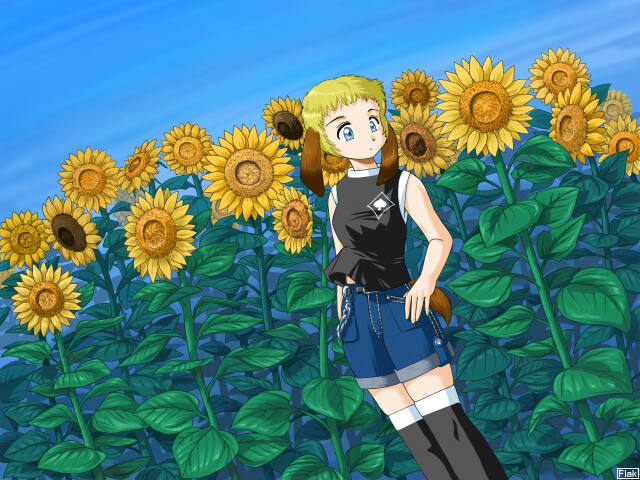 このイラストは、そんなひまわり畑をイメージして描きました。
